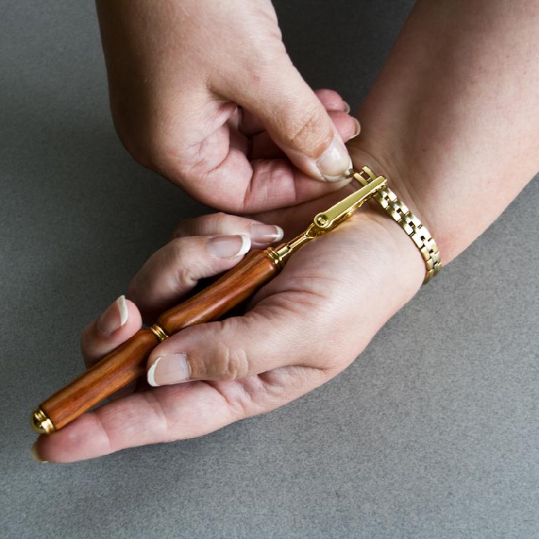 Lightweight and easy to use, the bracelet assistant acts as a third hand to hold one end of the bracelet in place while attaching the other. The first photo demonstrates the technique. Currently in stock:
